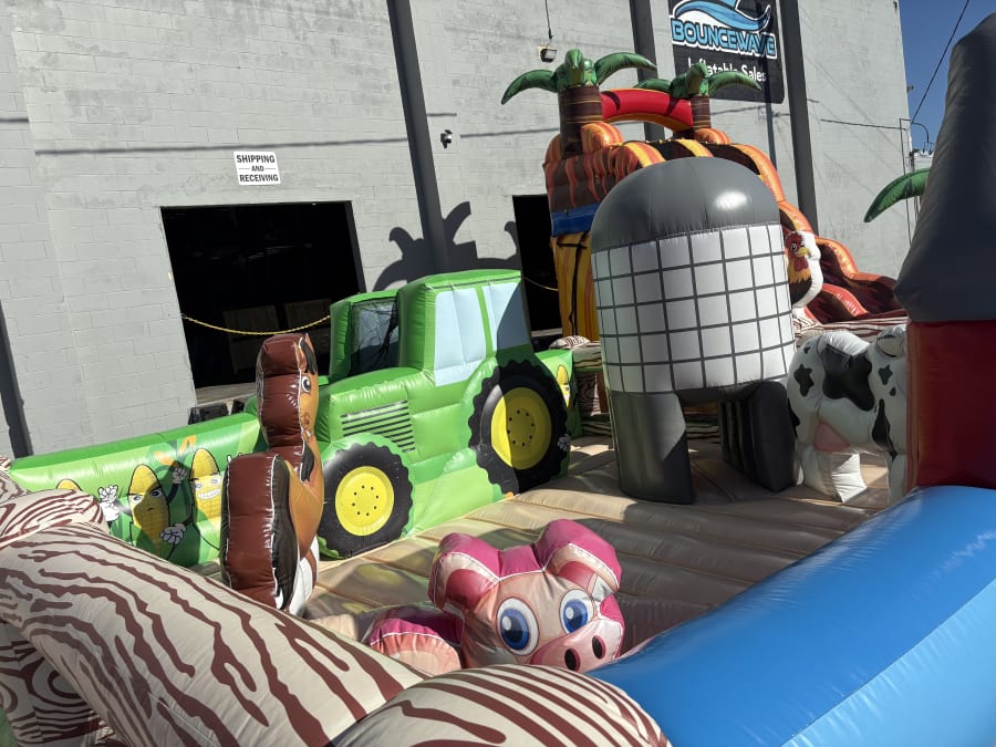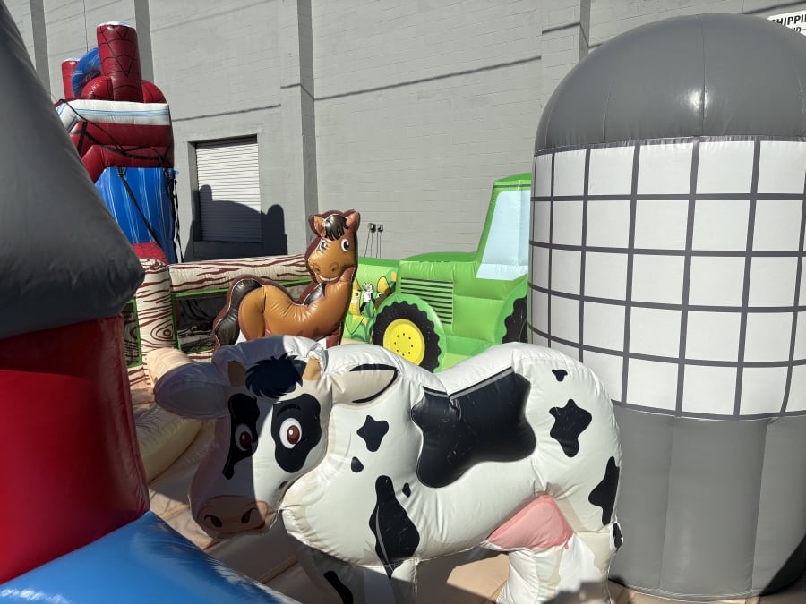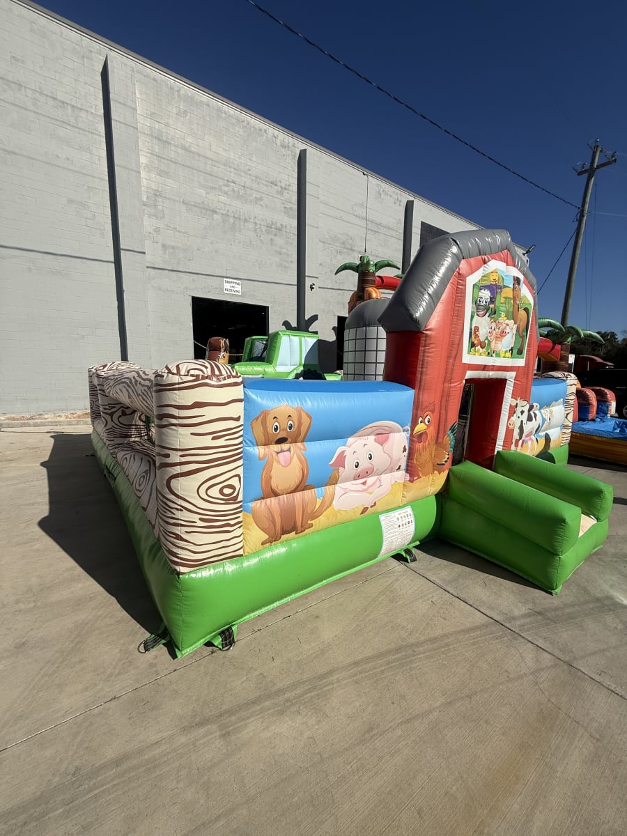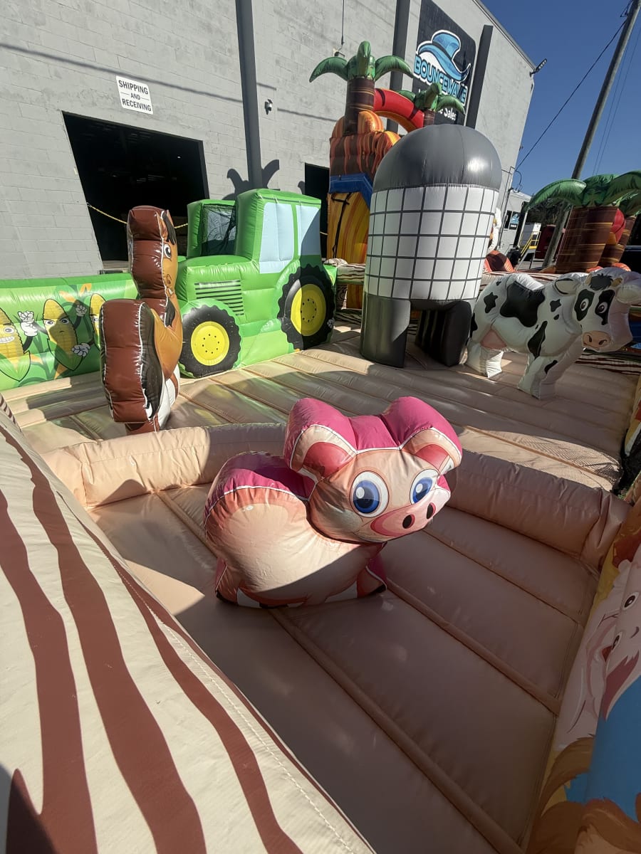 Bring the farm to your next toddler party with the Toddler Farmland Bounce! πŸ΄πŸ„πŸ–πŸšœπŸŒ½ This cheerful, farmland-themed bounce house features 3D popup characters—a horse, cow, pig—plus a tractor, corn silo and corn stalks for immersive play. Designed for little ones, it delivers safe, soft bouncing, vivid visuals, and instant smiles. Perfect for birthdays, daycare events, and family gatherings. 🎈