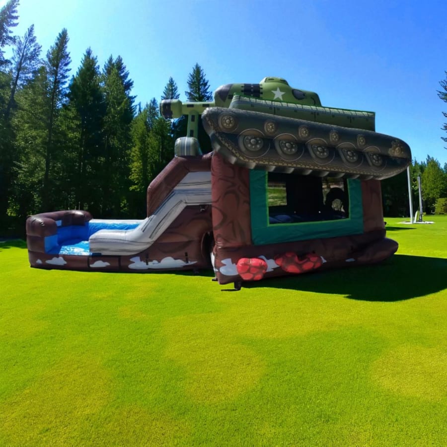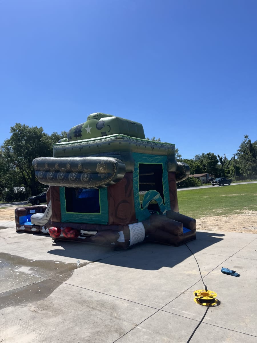 Looking for the ultimate party attraction that will have kids and guests raving? The main service + Tank 4-1 Wet/Dry Combo in Dade City, Zephyrhills, Wesley Chapel, Tampa, Land O Lakes, San Antonio, Orlando is your answer! Whether you’re hosting a backyard birthday, community festival, or school event, this spectacular 3D tank bounce house and slide combo transforms every occasion into a world of imagination and excitement. 🚀