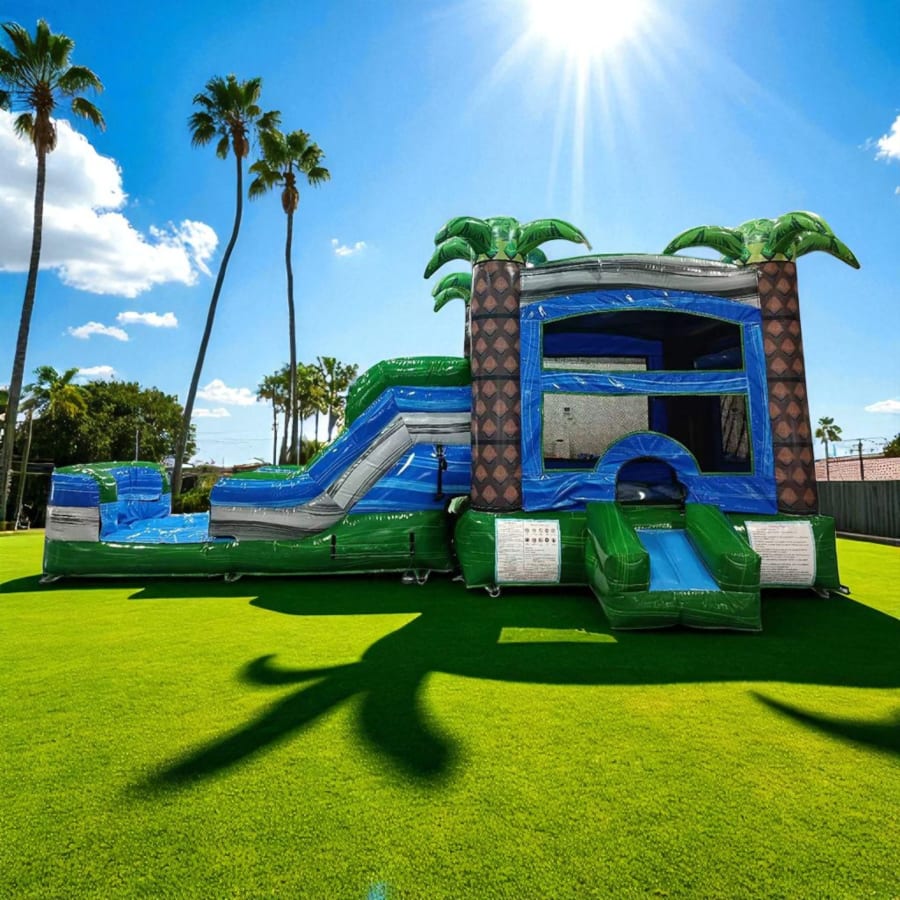 The Aqua Trop 4-1 Wet/Dry Combo is an inflatable bounce house with slide combo built to entertain kids and calm parents. Fast setup. Durable materials. Wet or dry play options make it perfect for summer splash parties and year-round backyard fun. Safe design, roomy bounce area, and a thrilling slide deliver nonstop excitement for birthdays, family reunions, and community events.