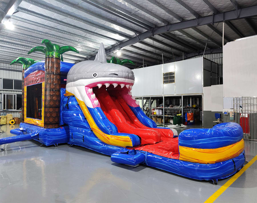 XL Shark Attack Combo Wet/Dry — shark themed bounce house with slide combo 🦈