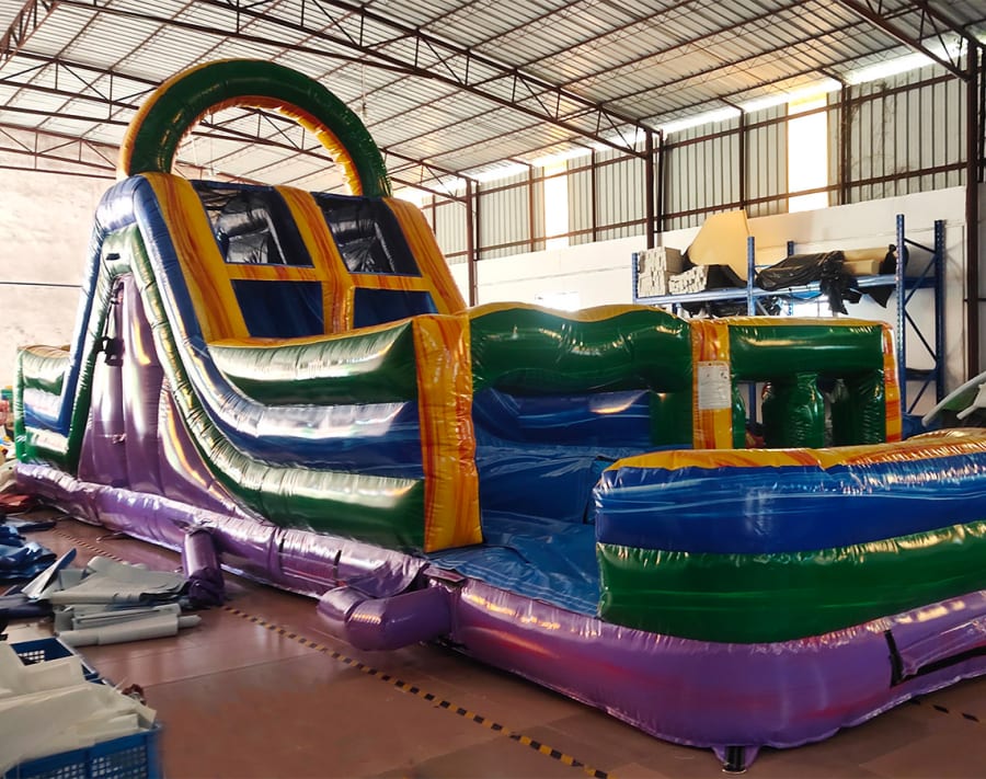 At the end of the obstacle course, get ready for an exhilarating ride down the massive slide! Feel the rush as you slide down and make a splash into the refreshing pool of water. It's the perfect way to cool off and celebrate your victory! 🌊🎢