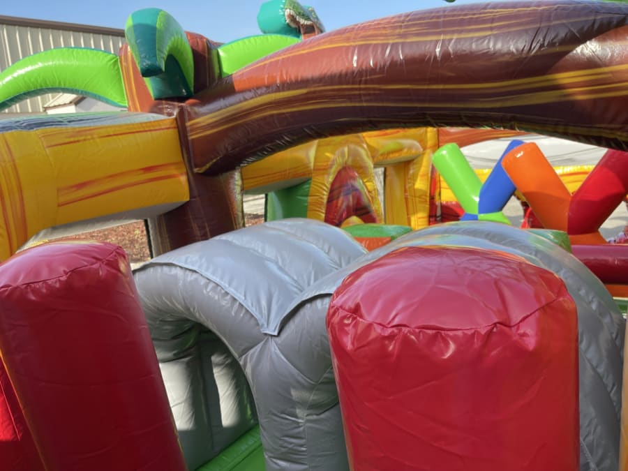 Get ready for an epic adventure with the Lava Raptor Wet/Dry Obstacle Course! 🌋🦖 This massive obstacle course is perfect for those who crave excitement and thrills. With its double lane slide and 3D dinosaur features, this obstacle course will transport you to a prehistoric world of adventure and fun!