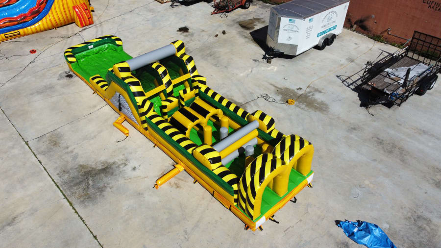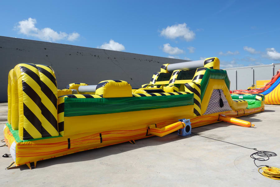 We deliver and set up the 46' Open Air Toxic Hybrid Wet/Dry Obstacle in Dade City, Zephyrhills, Wesley Chapel, Tampa, Land O Lakes, San Antonio, Orlando, Spring Hill, Brooksville, Plant City, Seffner, Dover, Valrico, Thonotosassa, Bushnell, Webster, Ridge Manor. Local permits and site checks handled on request.