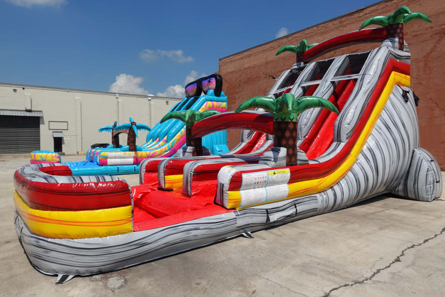 Water Slide Rental 20' Paradise Falls Double Lane Water Slide in Dade City, Zephyrhills, Wesley Chapel, Tampa, Land O Lakes, San Antonio, Orlando, Spring Hill, Brooksville, Plant City, Seffner, Dover, Valrico, Thonotosassa, Bushnell, Webster delivers big thrills for backyard parties, school events, and summer celebrations. This 20-foot double lane water slide combines speed, safety, and eye-catching tropical design to keep kids and adults entertained for hours. Book fast for weekends and peak season. ⏱️