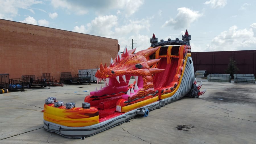 The Dragons Reign slide combines excitement with reliability. Dual lanes reduce wait time and boost participation. Wide lanes and reinforced seams increase rider confidence. Lightweight design keeps delivery and setup efficient. The slide is built for repeat use, rental durability, and maximum fun.