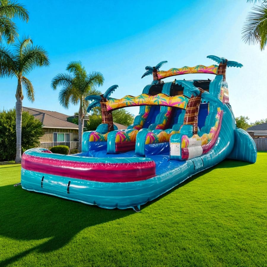 Bring island vibes and epic thrills to your next event with the 16' Island Flow Dual Lane Water Slide. Fast. Safe. Photogenic. This inflatable water slide delivers double-lane racing action and a refreshing splashdown for kids and teens. Perfect for birthday parties, block parties, church events, and summer gatherings. 🎉