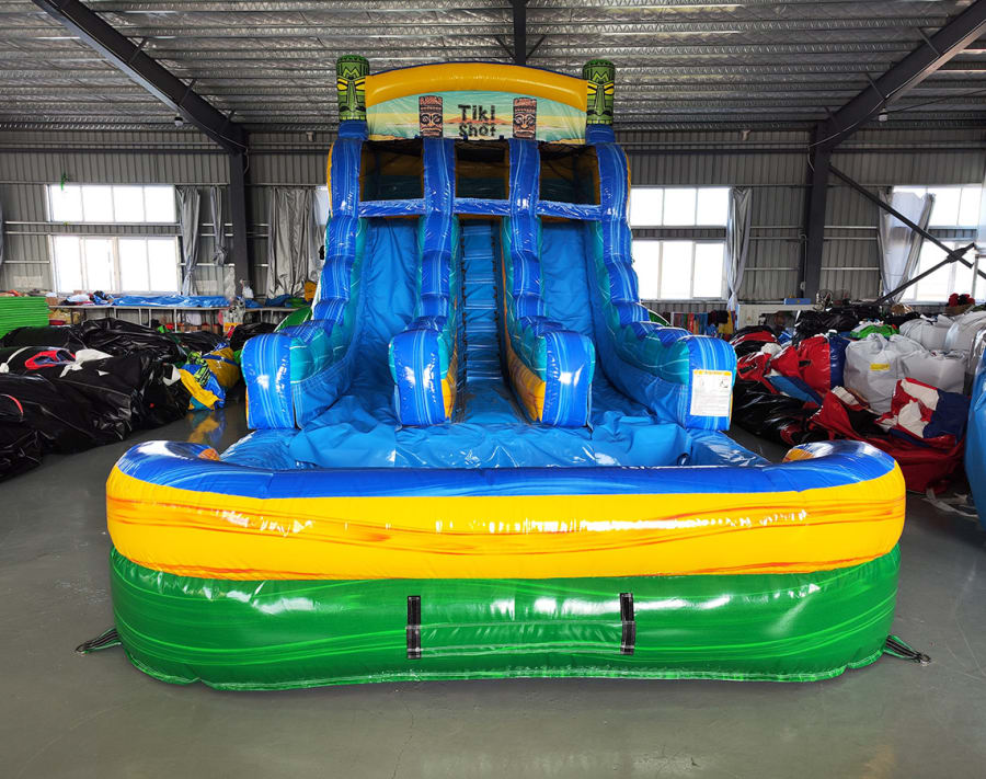 16' Tiki Shot Center Climb Double Lane Water Slide in Dade City, Zephyrhills, Wesley Chapel, Tampa, Land O Lakes, San Antonio, Orlando, Spring Hill, Brooksville, Plant City, Seffner, Dover, Valrico, Thonotosassa, Bushnell, Webster delivers an eye-catching tropical slide that turns any party into a destination. Perfect for backyard events, corporate picnics, and community festivals. Safe. Fast setup. Memorable photos. 📸