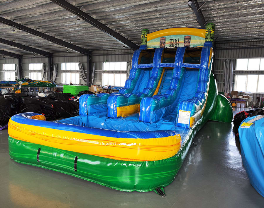 Reserve the 16' Tiki Shot Center Climb Double Lane Water Slide today and secure delivery to Dade City, Zephyrhills, Wesley Chapel, Tampa, Land O Lakes, San Antonio, Orlando, Spring Hill, Brooksville, Plant City, Seffner, Dover, Valrico, Thonotosassa, Bushnell, Webster. Quick quotes. Flexible rental windows. Ready to party! 🎉